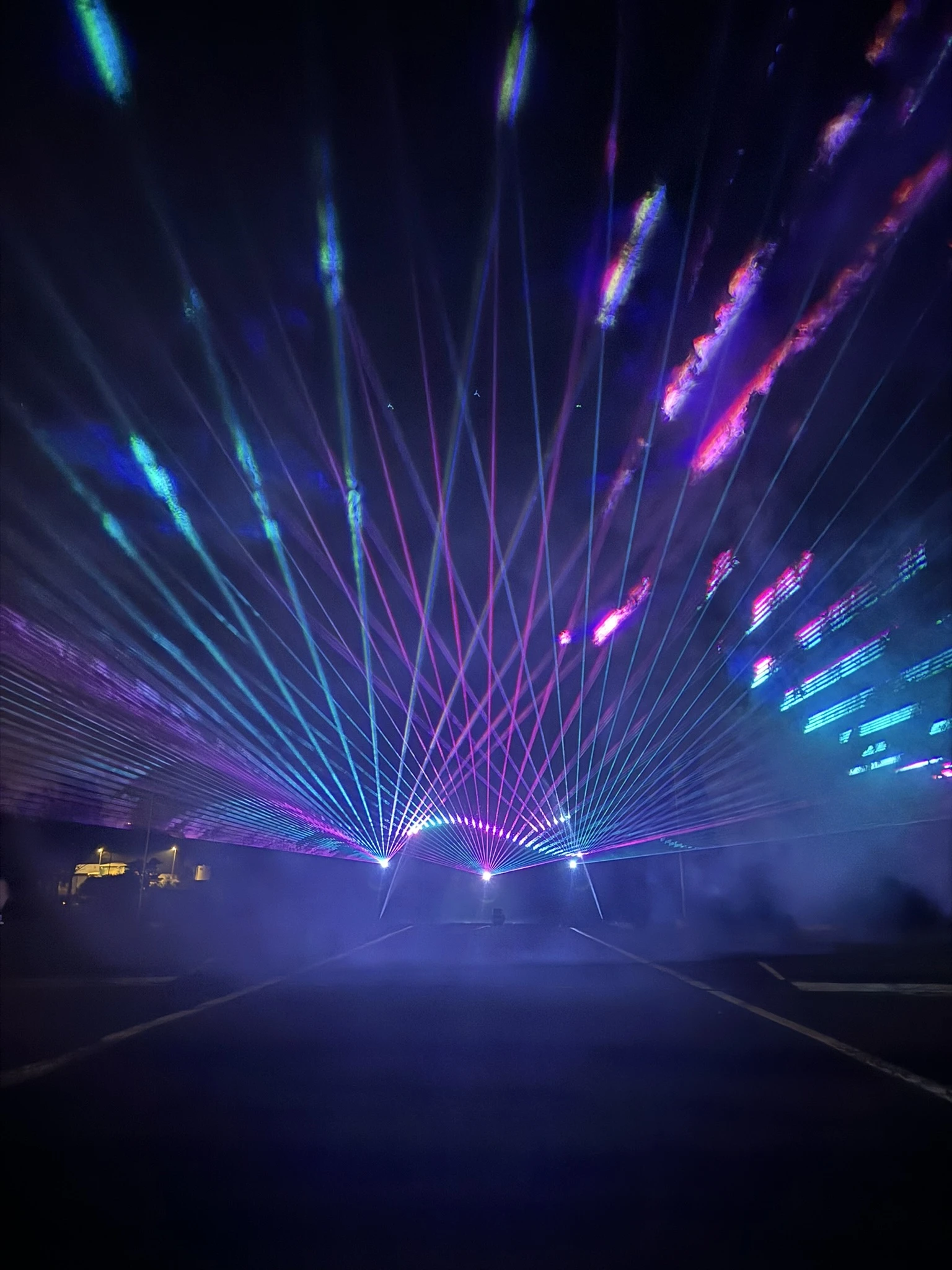 Les 3 lasers 25 watts installés sur le site ont offert une puissance lumineuse exceptionnelle, permettant de couvrir une large zone et d’assurer une visibilité optimale, même à grande distance.